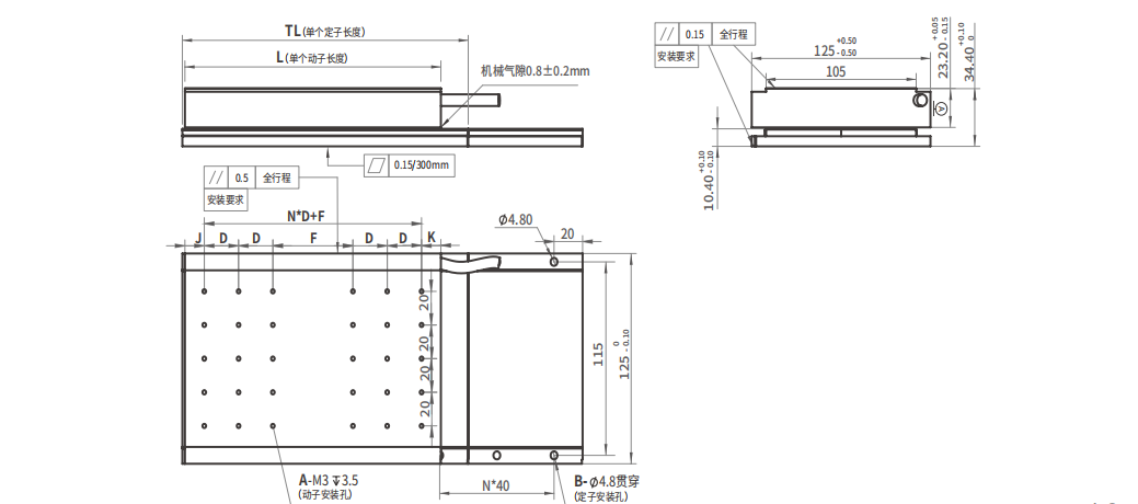 linear motor components , only 0 .8 mm (0 .031 inch) air gap and 0 .5 mm (0 .020 inch) air gap need to be adjusted .